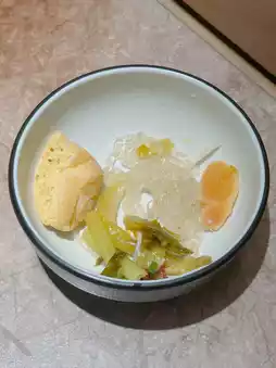 Sour Fish in Golden Broth🐟 à la carte $248💰 Very large portion😍 The sour vegetable broth is tangy and rich🤤 The fish is fresh and tender☺️ Plus pickled vegetables🥬 tofu puffs, celery, and sweet potato noodles🍜