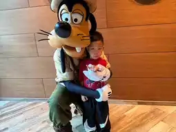 Must-do activities: Treasure hunt check-in on the Explorer’s Journey to exchange for a Seven Treasures badge; collect stamps to redeem postcards; the 2nd floor has a Finding Nemo play area with slides and a bedtime story session (9:00 PM trilingual show); sometimes there’s a surprise Mickey meet-and-greet! You can take photos with Goofy at the breakfast buffet, and don’t forget to keep your souvenir room card when you check out—we got two each of Mickey and Minnie cards, super happy~
