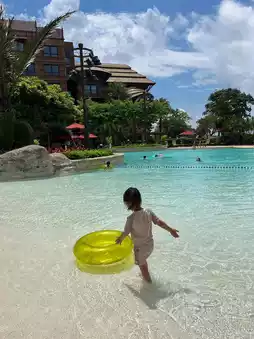 This place has a completely different feel from the park hotels~ It’s not so princess-themed; instead, it feels like a mysterious adventure camp where the kids run around exploring happily! The highlight is the free pool party at 4:30 PM—you definitely have to join!