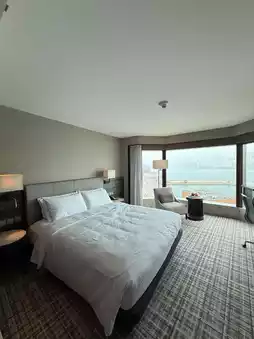 The hotel is located in the heart of Tsim Sha Tsui, and the floor-to-ceiling windows in the sea view rooms are simply amazing! Facing Victoria Harbour, with neon lights shining at night, Hung Hom Arena on the left, and the Convention and Exhibition Centre on the right. You can watch the fireworks for New Year's Eve right from your room 🎆. My daughter exclaimed "Wow~" the moment she opened the door, the view is absolutely unbeatable!