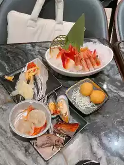 Buffet area🍽️ set includes💰 crab roe, salmon roe, chilled green mussels, chilled shrimp🦐 seared tuna soy sauce marinated, smoked salmon🐠 ham slices, smoked duck breast🦆 black olives🫒 dried plums, dried apricots, almond sticks, butterfly pastries🦋 toast🥖 honey🍯 salad🥗 cold appetizers🐙🫚🐓🫛 dim sum, cordyceps flower fish maw black-bone chicken soup🥣 spicy crayfish🦞 cheese baked broccoli🥦 salt-grilled bluefin tuna shark🐠 crispy fried fresh milk🥛 karaage chicken balls🍗 white rice🍚