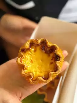 When visiting Hong Kong, you can't miss trying the famous Hong Kong egg tarts, which many popular shops offer. Hashtag B is one of the highly reviewed places that people say you must try when in Hong Kong. Hashtag B doesn’t just sell egg tarts; they also offer a variety of other baked goods. However, their egg tarts are the store’s most popular item, causing long lines at many branches. We bought ours at the Causeway Bay branch and didn’t have to wait in line, probably because it was still early in the morning. We chose to try the original and matcha flavors, which are larger than typical egg tarts. The crust is a flaky pie crust, crispy on the outside and soft inside, with a very smooth and fragrant filling. Personally, I loved it, but since the pieces are large, it’s best to share with friends. I highly recommend it! If you go to Hong Kong, be sure to try it—you won’t be disappointed. The shop has many branches, so you can line up at whichever is convenient, or go early in the morning when it’s much less crowded.