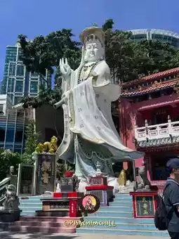 Pray for blessings from the Goddess of Mercy at Repulse Bay, Hong Kong, and experience the sacredness by the sea. This is another sacred place that combines faith with the beautiful sea views of Hong Kong. The Tin Hau Temple Repulse Bay is a must-visit destination. This temple is located by Repulse Bay Beach, one of Hong Kong’s most beautiful and popular beaches. The temple is not a large building like typical temples but a group of shrines and statues of various Chinese deities arranged outdoors by the sea, creating a unique and distinctive atmosphere. The highlight of visiting here is to pay respects and pray to the large pure white statue of the Goddess of Mercy, elegantly enshrined by the sea, as well as the deity Tin Hau (Tin Hau Temple) or the Sea Goddess who protects fishermen and travelers. There are also many other deities, such as the God of Wealth (Cai Shen), the God of Love (for couples), and the Longevity Bridge, which is believed that crossing it once will add three years to your life. What makes visiting here even more special is experiencing the interesting beliefs and rituals, such as rubbing the wish on the fish statue or tossing coins into the fish’s mouth for good luck. Additionally, the vast sea view contrasted with the colorful deity statues offers a beautiful and unique photo spot. Visiting here not only allows you to make merit and pray for good fortune but also to relax and enjoy the beautiful and peaceful seaside atmosphere!