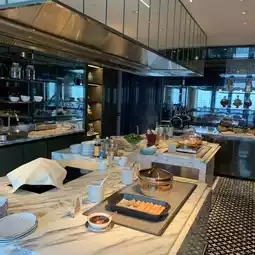 There are many choices for breakfast, including herbed pork/chicken sausage, porridge, fried dough sticks, shrimp dumplings, siu mai, various breads, omelettes, etc. I personally recommend the century egg and lean meat porridge and shrimp dumplings, both are good.
