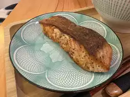 The tomato fish soup udon can be paired with pan-seared salmon or pan-seared chicken steak. Waffle and Shrimp Cake chose the pan-seared salmon. The salmon piece was quite large, with crispy skin, and not greasy at all.