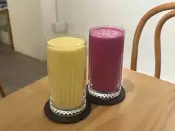 Waffle ordered the mango yogurt milkshake ($55), and Shrimp Cake ordered the red dragon fruit yogurt milkshake ($55). The colors were beautiful, perfect for photos, and the taste was smooth with a faint natural fruit aroma.