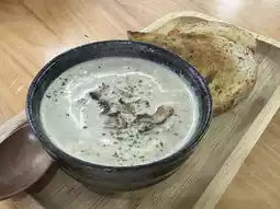 For food, first came the mushroom cream soup with sourdough bread ($48). The mushroom cream soup was quite good, and the sourdough bread was a pleasant surprise, toasted to golden brown, crispy outside and soft inside, making Waffle fall in love at first bite.