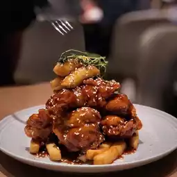 Sauce Garlic Boneless Fried Chicken Half: Fried chicken is crispy on the outside and tender on the inside, still very juicy meat juice inside, and this time it is sauce garlic flavor, garlic flavor is quite strong, soy sauce flavor will not be more than garlic flavor, nor too salty, plus it is boneless, convenient enough.