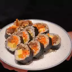 Traditional seaweed rice rolls: It is a traditional Korean seaweed roll, which is rich in ingredients, including carrot strips, pickled cucumbers, fat beef and other ingredients. Each piece is full of filling, and the rice they use has a burst of sesame oil fragrance, which makes people appetite.
