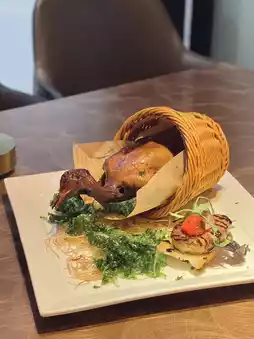 Lemongrass Braised Pigeon with French Foie Gras Toast: The pigeon meat is tender, accompanied by foie gras toast😍 The foie gras melts in your mouth, and the toast at the bottom is very crispy, making each bite extremely satisfying!😌
