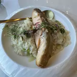 The pan-seared salmon is rich in oil, with a crispy exterior😍 no fishy smell at all, paired with risotto where each grain is distinct, the flavor matches well and it’s quite creamy!
