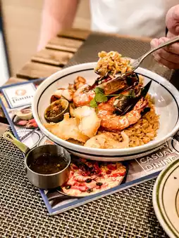 A personal favorite! This dish blends Thai flavors into Western risotto, with the tangy and spicy Tom Yum complementing the chewy risotto surprisingly well! The seafood toppings are generous, with springy tiger prawns and sweet scallops. The fried flounder fillet is so tender it almost melts on the tongue. This creative dish proves that cafe food can also be profound.