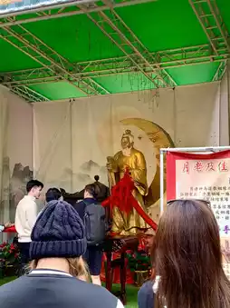 - Tie the red thread onto the red thread connecting deity Yuk Lo and the statue of the gender you prayed to