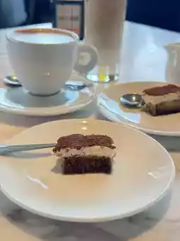 Today's dessert was tiramisu, and we also ordered one iced and one hot latte😚
