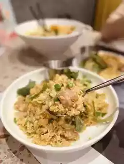 🦐 Shrimp head oil is super fragrant! The whole plate has a smell of shrimp 🍗 with bouncy pork neck! There is also the best cauliflower rice 😋 Thai restaurants have options other than white rice ☺️