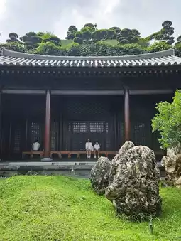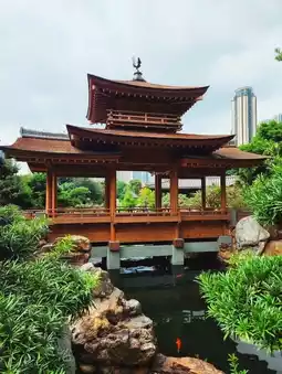 During my trip to Hong Kong, I visited Nan Lian Garden, a great place to walk with children. The wide artificial pond and pavilion, along with the quietly flowing water sounds, spark the child's curiosity. Standing on the wooden bridge, looking at the lake, I also watched the brightly colored koi swimming leisurely. Wooden pavilions and buildings in the Tang Dynasty style harmoniously blend within the garden. Walking while admiring Hong Kong's various plants and flowering trees is truly charming.