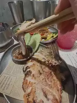 The portion of grilled pork neck was quite generous. The edges were charred, and the pork neck was thick, juicy, and tender, with a smoky charcoal-grilled aroma. Paired with the special dipping sauce, it was absolutely delicious 😋.