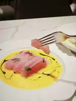 A delicate taste prelude! The marinated hamachi has a glossy, reddish flesh, tender and fresh 💗 with a sweet and sour citrus sauce that brings out a refreshing aroma—instantly awakening the taste buds.