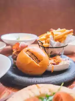 The burger is generously sized, featuring thick-cut beef inside. The beef is flavorful and juicy, making it a satisfying and delicious choice.