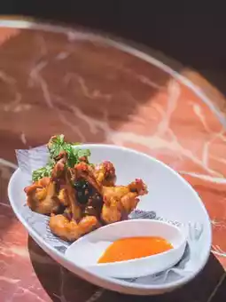 The chicken wings are crispy on the outside and tender inside, with a prominent lemongrass flavor. The tangy and spicy sauce is refreshing and enjoyable.