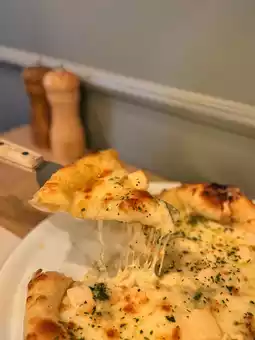 You must try their signature pizza, made fresh to order ๐ฅ The four-cheese thin crust pizza is a cheese loverโs paradise! It uses Agerola Fior di Latte, Gorgonzola, Asiago, and 24-month aged Grana Padano. Each cheese has a distinct flavor, and the thin crust is crispy with slightly charred edges. Every bite is a rich cheese indulgence ๐ฅฐ but be warned, itโs very filling ๐