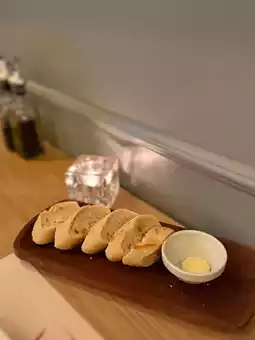 After ordering, hot French bread was served, thoughtfully sliced. Spread with butter, it was crispy on the outside and soft inside!