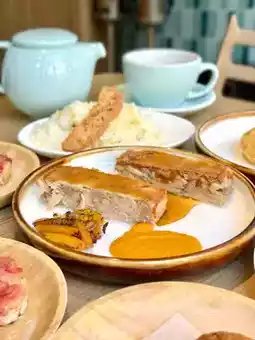 The suckling pig has crispy skin, tender and juicy meat, paired with sweet pumpkin puree to balance the richness.