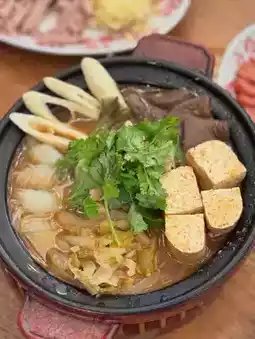 Completely different from night market fried stinky tofu! The raw stinky tofu imported from Taiwan is slowly simmered in mala soup, biting into the honeycomb-like pores bursts out hot juice💦 The stinky smell is mild but the spicy numbness lingers, paired with pickled vegetables it’s super addictive! The soup base deserves praise—it’s made by simmering goose bones with 10 kinds of spices, leaving a sweet aftertaste😋