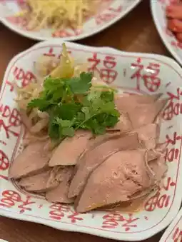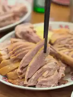 The moment it arrives, you can smell the caramel smoke aroma! The goose skin shines with an amber gloss, and the chef’s knife skills are superb—slices of skin are thin enough to be translucent, but the meat layer is thick😍 Biting into it, you first feel the crispy sugar-smoked skin, then the goose fat "sizzles" out, the meat is tender and smooth with a slight bounce! The biggest surprise is that the smoky aroma seeps into the bone crevices, paired with the shop’s secret spicy chili sauce (🌶️ mildly spicy and pungent), making it hard to stop eating!
