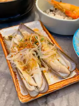 Highly recommended must-tries: steamed razor clams with golden and silver garlic vermicelli, bluefin tuna sashimi, cherry foie gras, dried cod crab meat crab roe taco, grilled tilefish with black truffle cream sauce, strawberry lover sweet and sour pork, Peking duck with lotus leaf wraps, salted baked big head prawns,