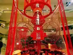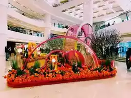During the Lunar New Year season, head to Longgu Beach in Tuen Mun to watch the sunset, transferring at Tuen Mun Station along the way. The shopping mall at Tuen Mun Station, V city, offers a wide variety of shops, including brand stores and popular chain stores such as Eslite, Yata, and Decathlon, catering to all needs and suitable for all ages. The Lunar New Year decorations are mostly bright red, very festive, with peach blossoms complementing the red, and lanterns glowing warmly—perfect for taking photos.