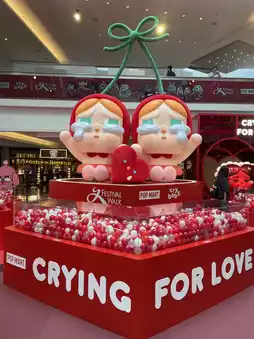 Today I went to Festival Walk to take photos📸 with Crybaby. This time, the theme is "CRYBABY PLAYGROUND," featuring multiple giant blind box figure themes and exclusive photo frames that make up the Crybaby playground. There are photo spots with cherries🍒, Angel’s Kiss & Devil’s Kiss, an oversized Crying For Love box, broken heart masks, CRYBABY mini hearts, heart-shaped silly Cupid💘, and more.