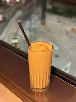 Made with fresh mango, yogurt, cumin, and salt, blended into a frothy, thick, and silky texture. The flavor is sweet, tangy, and refreshing.