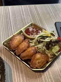 The chicken wings are fried to a crispy outside and juicy inside, drizzled with Korean sweet and spicy sauce. It’s not overly sweet, the spiciness is moderate, very tasty and appetizing.