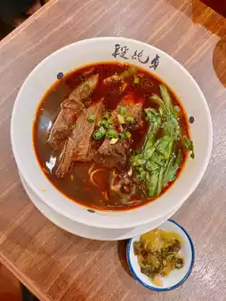 Signature Braised Beef Tendon Noodles (Thin Noodles) 🍜 A la carte $86 💰 The beef tendon is braised until tender and flavorful 🥩 The noodles are smooth, and the broth is rich with a slight spiciness 🌶️ With pickled mustard greens and oil lettuce, this is a very classic bowl of beef noodles 🤤