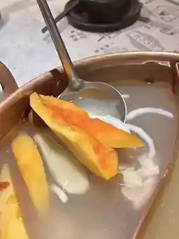 It has a fragrant papaya and coconut flavor, this broth is light and not heavy