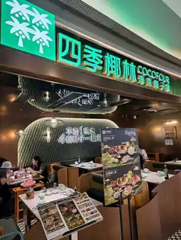 Finally, Four Seasons Coconut Grove Coconut Chicken has arrived in Hong Kong! I immediately invited friends to the MOKO New Century Plaza store in Mong Kok. As soon as we entered, we were attracted by their tropical-themed decor~ The wooden design combined with warm lighting creates a chill and comfortable atmosphere, instantly giving the feeling of a vacation in Hainan Island! ✨