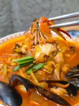 The broth is fresh and slightly spicy, and the noodles soak up all the seafood essence. The seafood includes crab, mussels, shrimp, and clams, all very fresh. The best part is the warm soup that stimulates the appetite with just the right amount of spiciness~