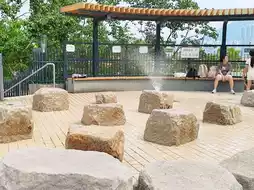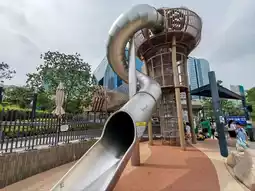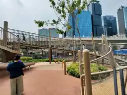 This is both a viewing platform overlooking Victoria Harbour and a stage for children to engage in social role-playing games. From the highest spectator seats to the lowest platform, you can walk, climb, slide, or of course, sit down and rest.