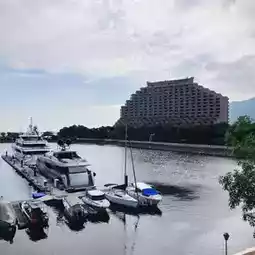 The overall building has a Mediterranean architectural flair, and most of the mall is a restaurant with multinational cuisine. There are also super and convenience stores, which is very convenient! The mall has a coastal view.