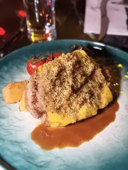 This dish is my favorite. The pork skin is roasted to a crispy golden brown, with a crunchy texture. The meat is tender and not tough, with just the right amount of fat, fragrant but not greasy. Served with semi-melted cheese and sauce, absolutely delicious! 🤤