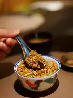 The fried rice grains are distinct, mixed with plum and whitebait, offering a sweet and sour flavor that is very appetizing. The chef thoughtfully asked if we wanted green onions added, super considerate🫶🏻