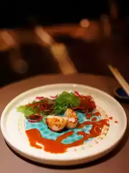The scallops are crispy on the outside and tender inside, with the spicy sauce offering a mild heat and aroma that enhances the flavor without overpowering it—absolutely delicious!