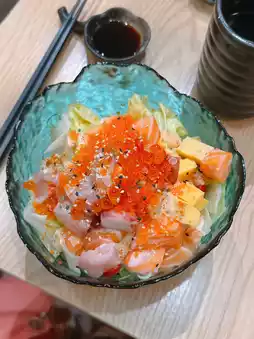 Assorted Sashimi Salad (small) 🥗 à la carte $58 💰 includes salmon roe, octopus 🐙 crab roe, amberjack, salmon, tuna, tamago 🍳 Chinese-style salad, salad greens 🥬 cherry tomatoes 🍅 sweet, sour, and slightly spicy 😛 refreshing and appetizing 💦