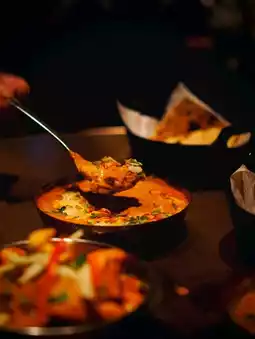 The curry is rich and creamy, with plenty of chicken pieces.