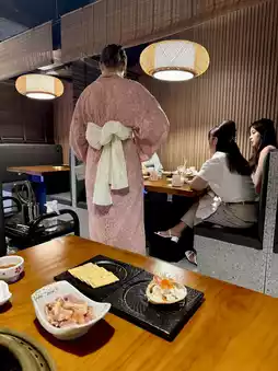 The ladies at the next table were celebrating a birthday, and the dessert prepared by the restaurant was stunning! After taking photos, they all left together. We thought they went out for a smoke, but when we paid and stepped outside, we saw the birthday person's name displayed on the restaurant sign. It was very thoughtful, and I think anyone who sees it would be truly surprised!!!