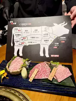 The A5 Miyazaki beef three-course set started with the front leg meat, which had a stronger beef flavor and a fibrous texture. The triangular brisket was thicker than the former, rich and chewy. The monk’s head cut was the richest, bursting with buttery beef aroma!