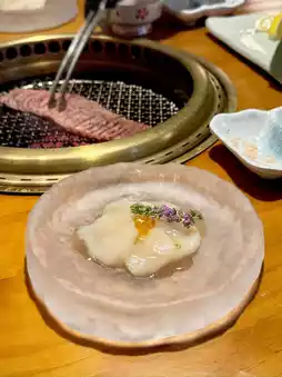 Plum scallop sashimi had a sweet and sour plum sauce, and the scallops were delicious even without dipping sauce.