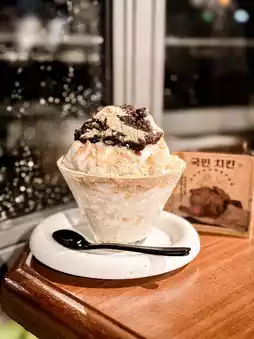 The red beans are dense, the mochi soft and chewy, and the condensed milk sweetness is restrained, ending the meal on a light and satisfying note.