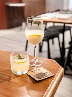 Two welcome drinks: The MAKKOLIT COCKTAIL is based on Korean makgeolli, slightly sweet with a fermented rice aroma and a refreshing fizz; the PORCH LEMONADE is a balanced blend of lemon and herbs, perfectly serving as an appetizer drink.
